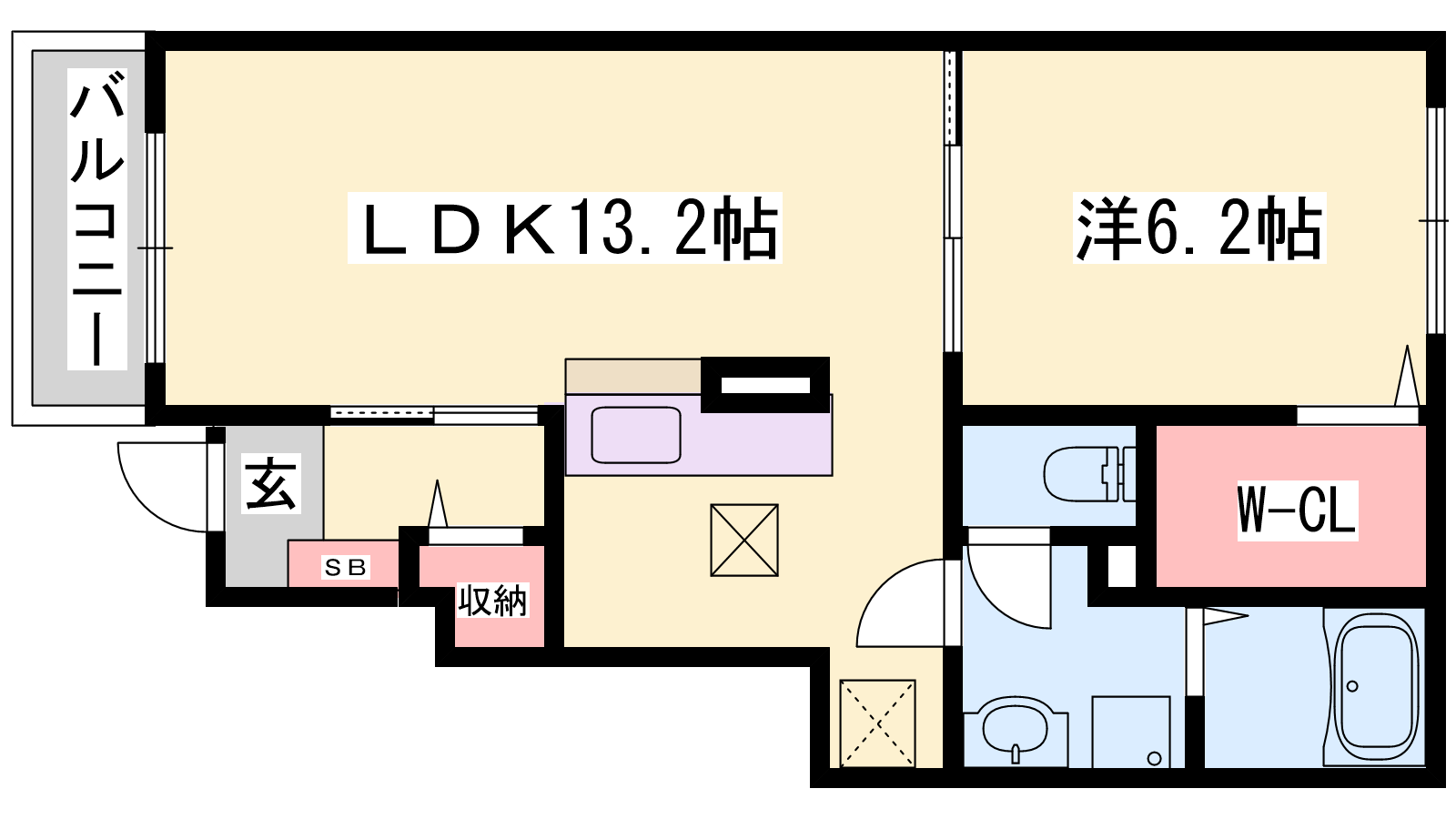 - LDK13.2帖、洋室6.2帖