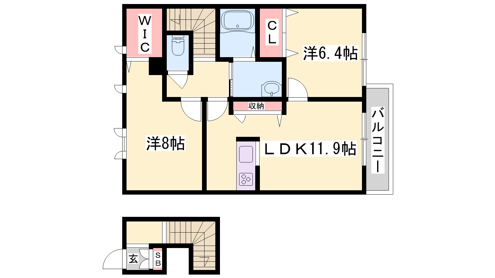 - LDK11.9帖、洋室8帖、洋室6.4帖