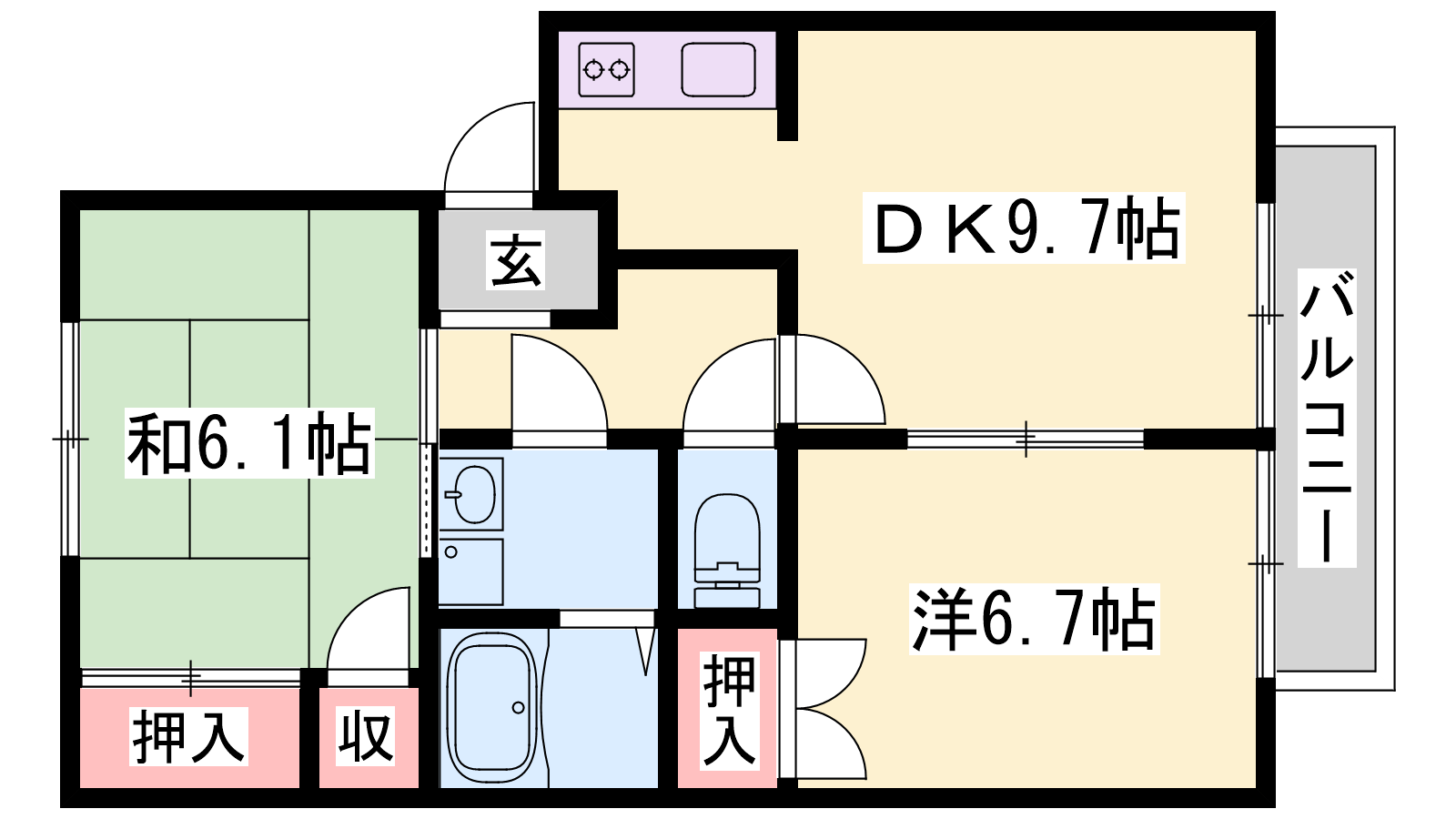 - DK9.7帖、和室6.7帖、和室6.1帖