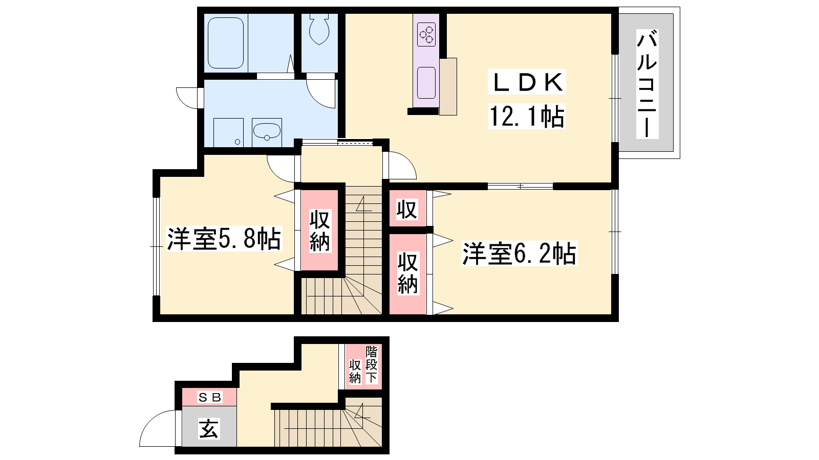- LDK12.1帖、洋室6.2帖、洋室5.8帖