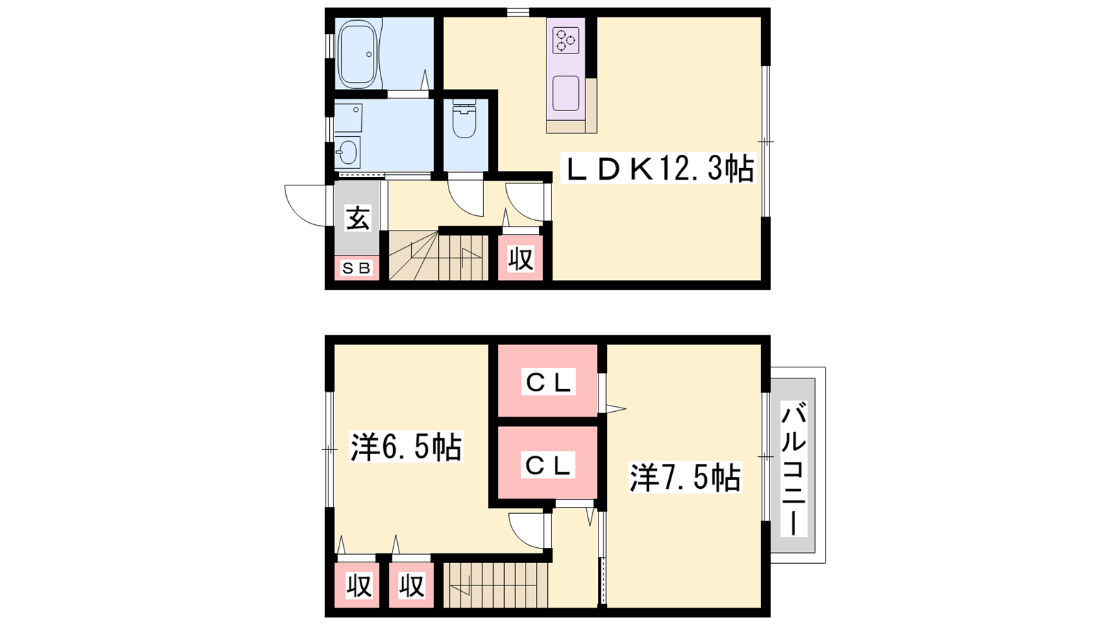 - LDK12.3帖、洋室7.5帖、洋室6.5帖