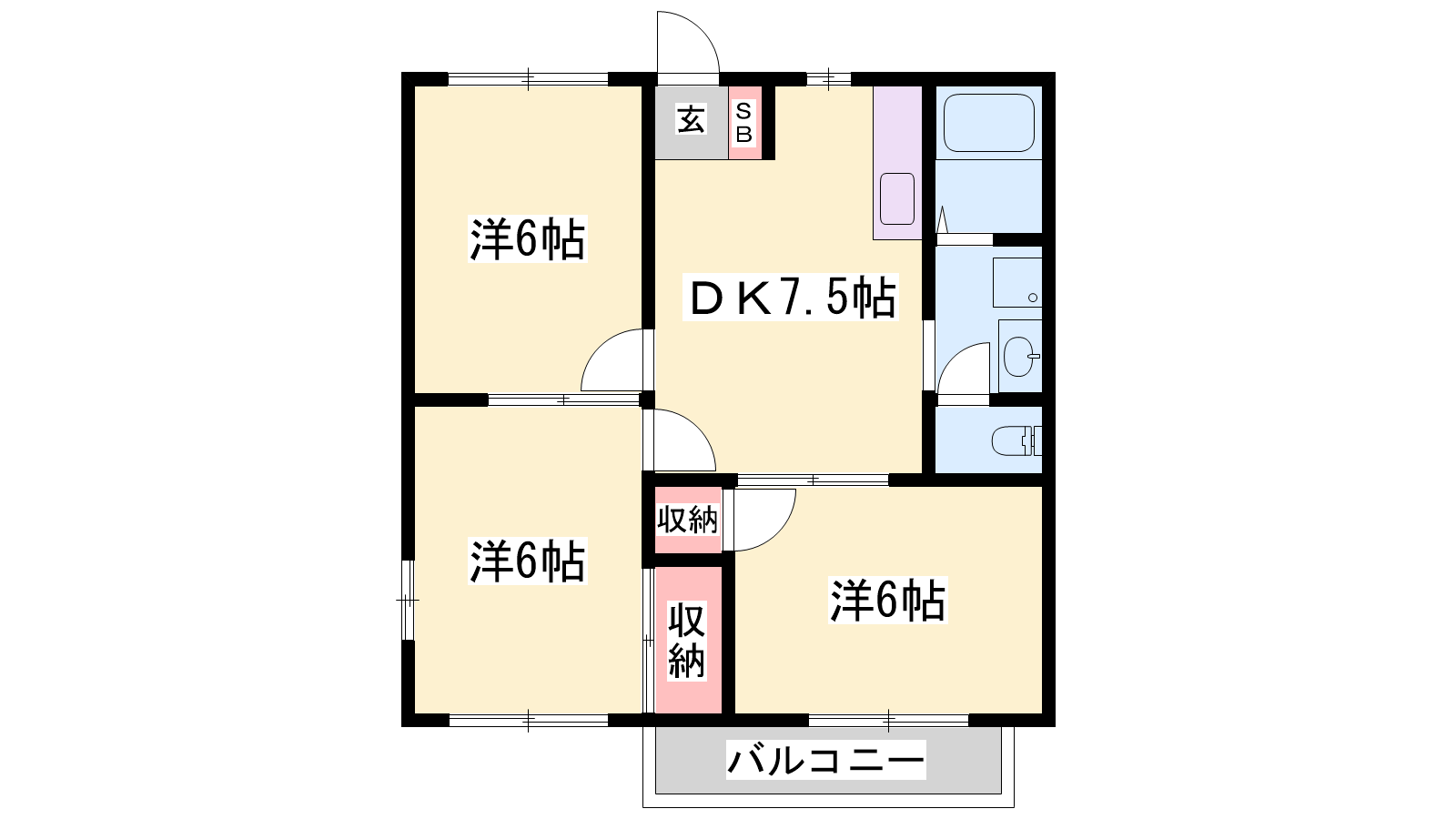 - DK7.5帖、洋室6帖、洋室6帖、洋室6帖