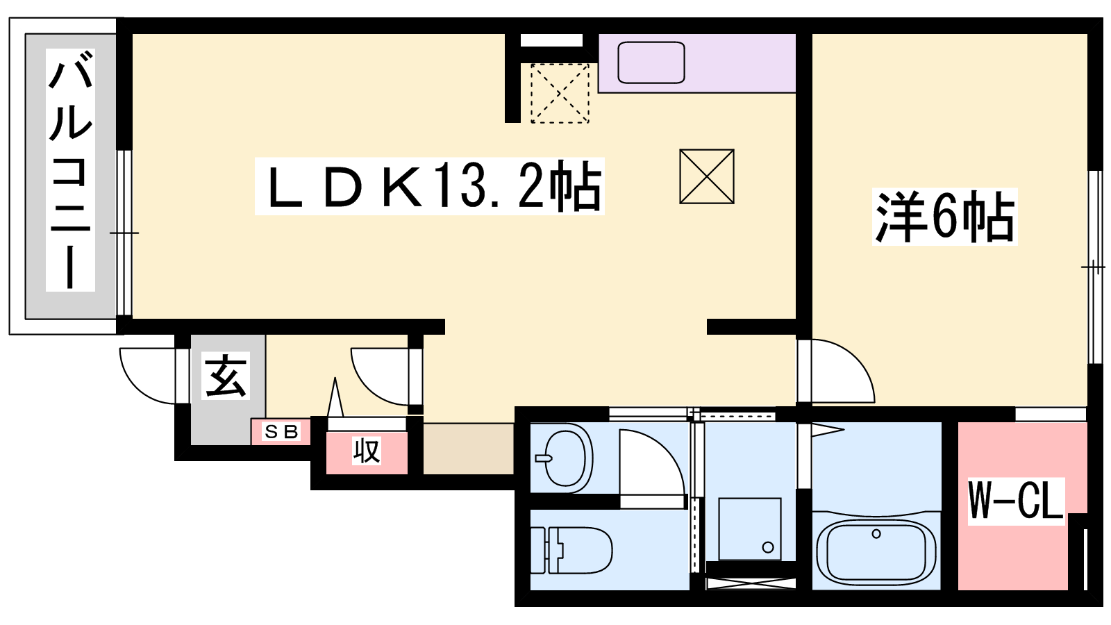 - LDK13.2帖、洋室6帖