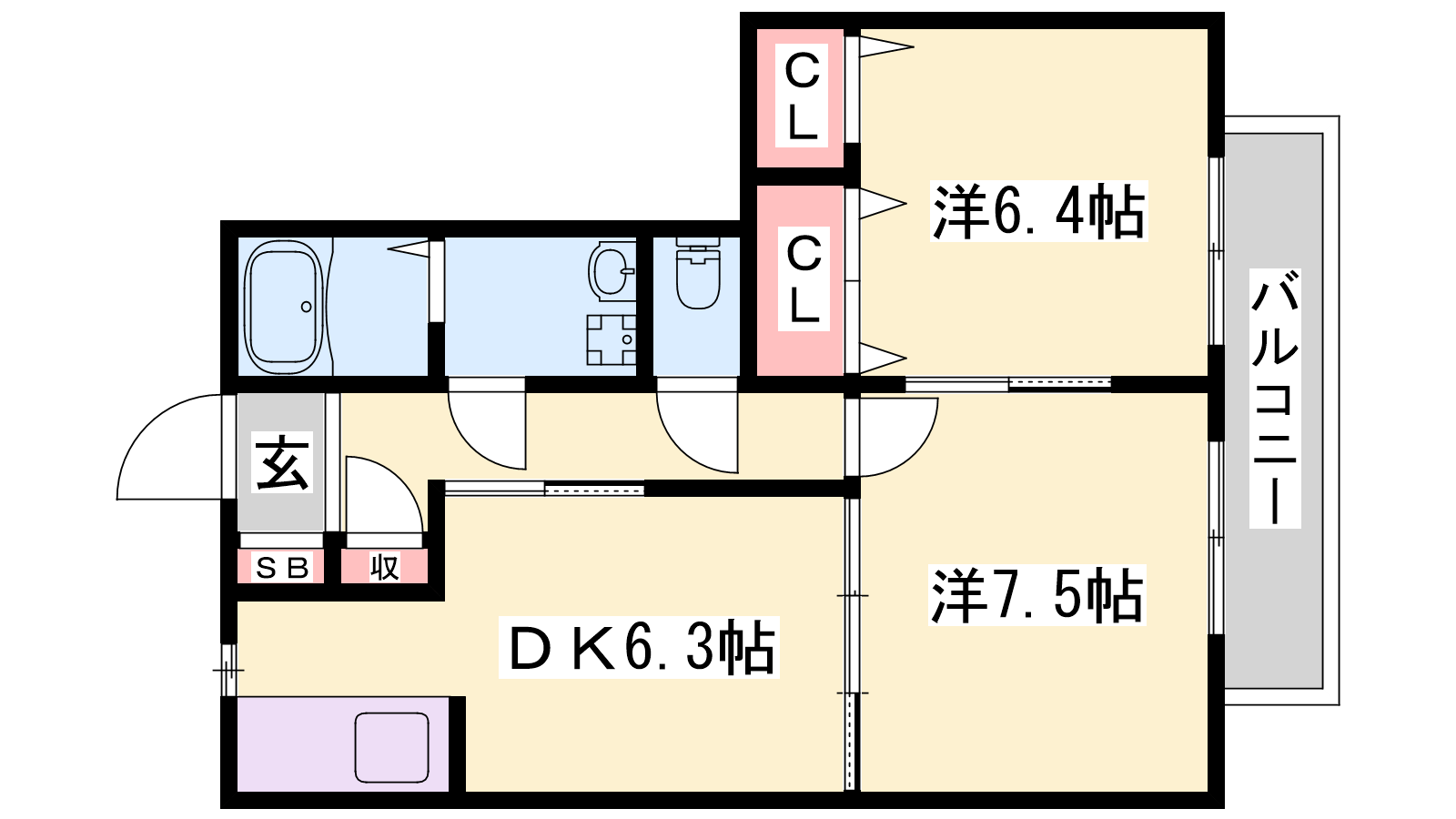 - DK6.3帖、洋室7.5帖、洋室6.4帖