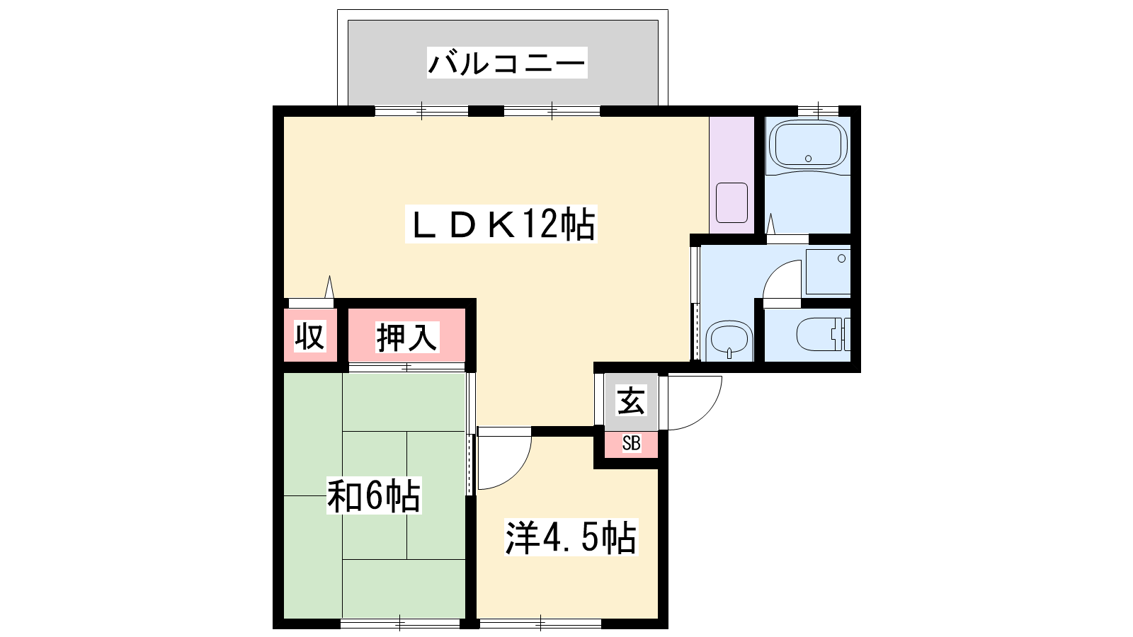 - LDK12帖、和室6帖、洋室4.5帖