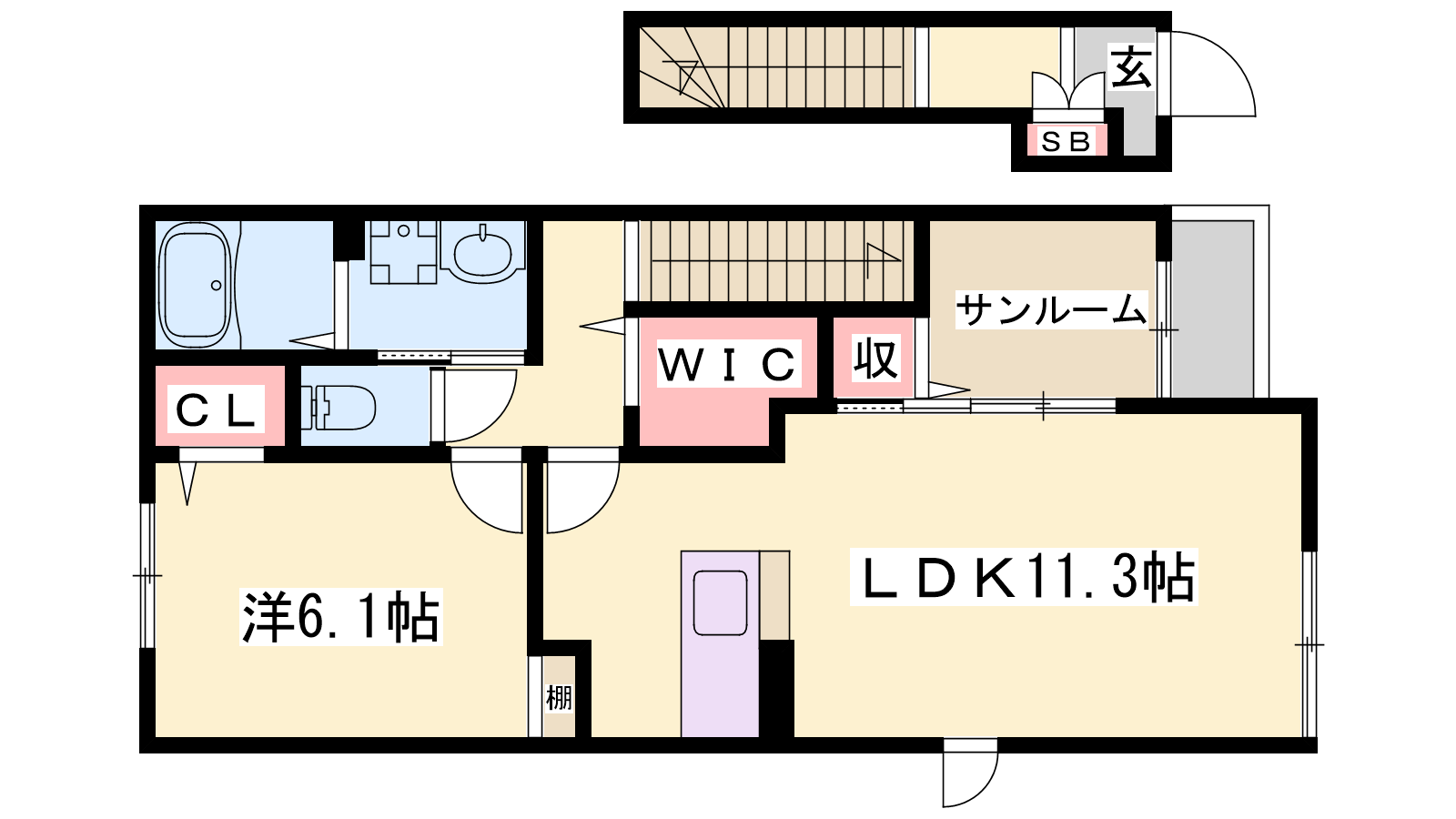 - LDK11.3帖、洋室6.1帖
