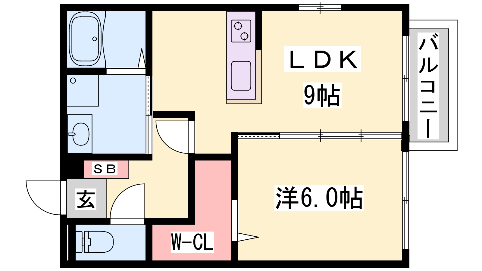 - LDK9帖、洋室6帖