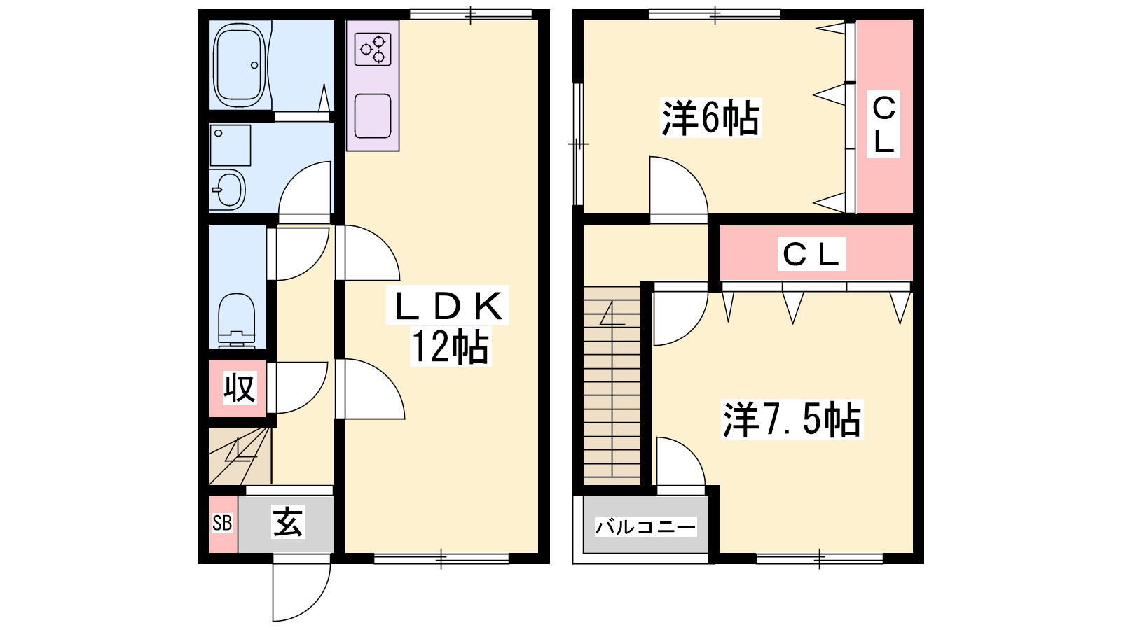 - LDK12帖、洋室7.5帖、洋室6帖