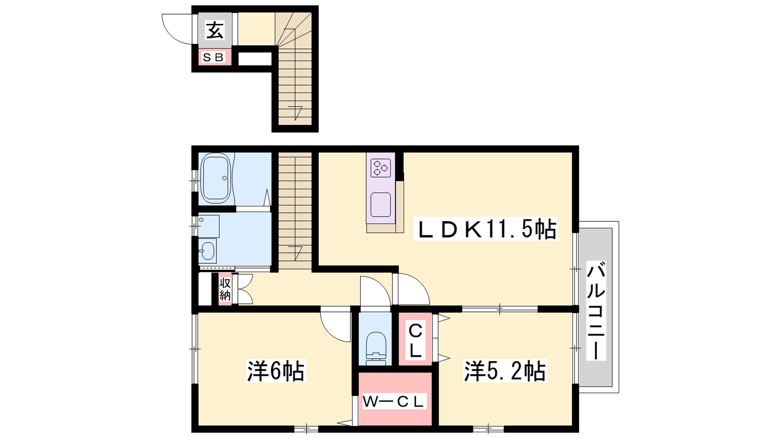 - LDK11.5帖、洋室6帖、洋室5.2帖