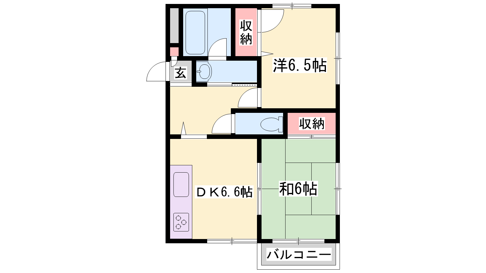 - DK6.6帖、洋室6.5帖、和室6帖
