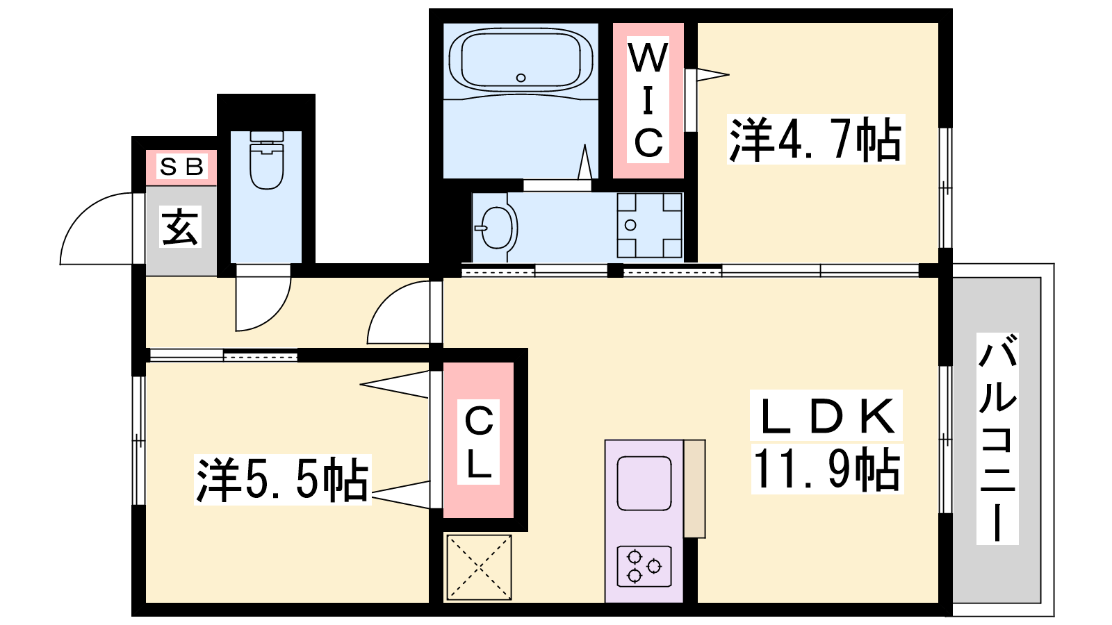 - LDK11.9帖、洋室5.5帖、洋室4.7帖