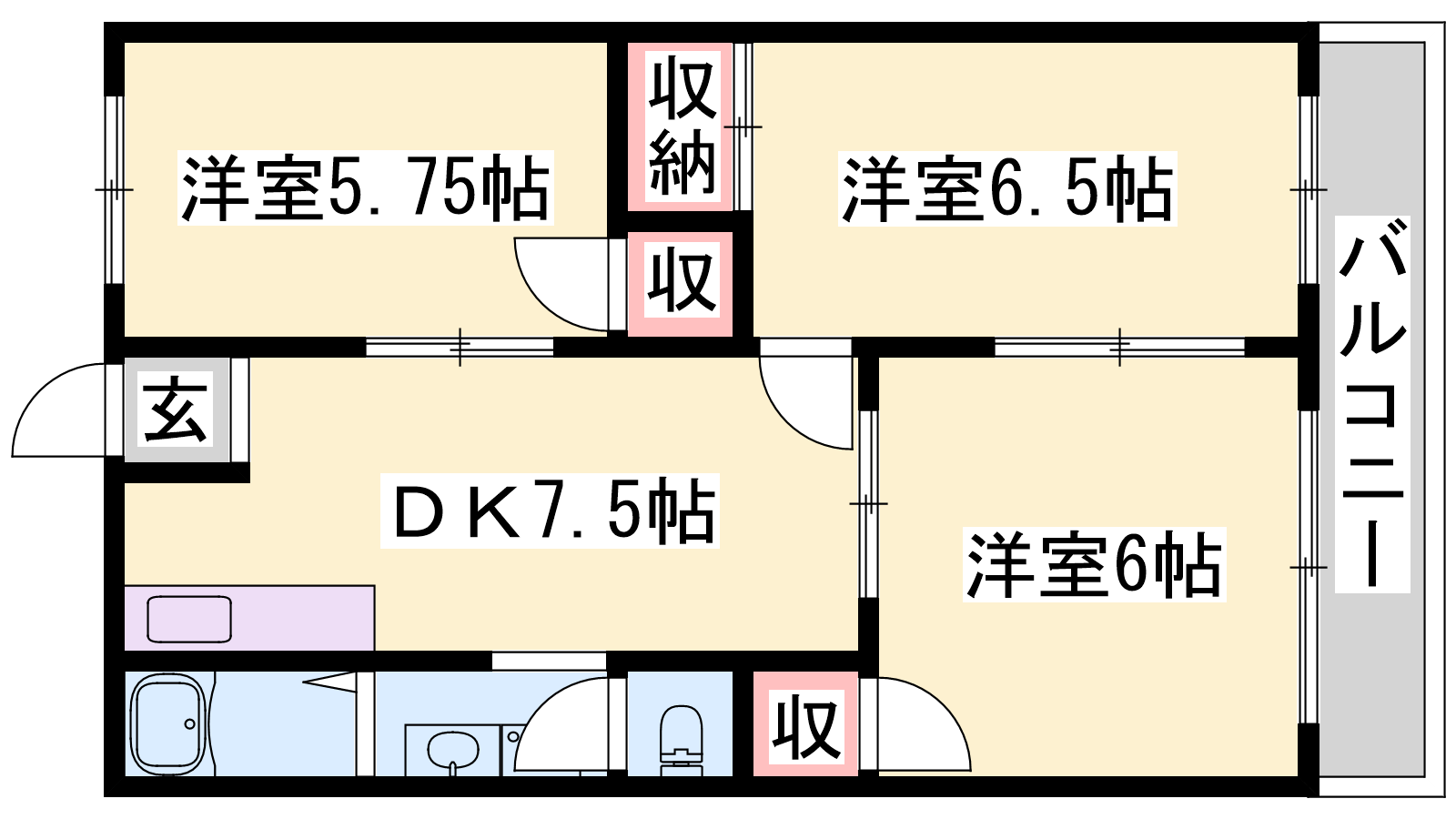 - DK7.5帖、洋室6.5帖、洋室6帖、洋室5.75帖