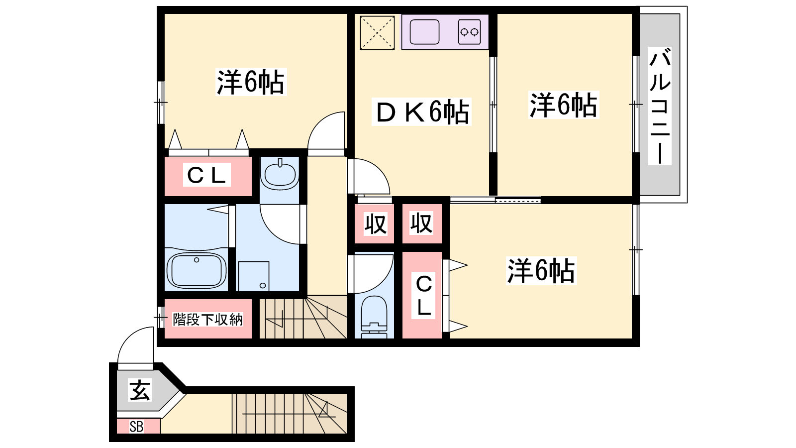 - DK6帖、洋室6帖、洋室6帖、洋室6帖