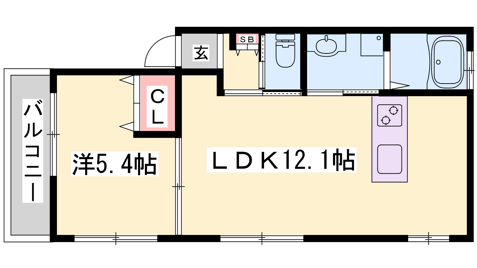 - LDK12.1帖、洋室5.4帖