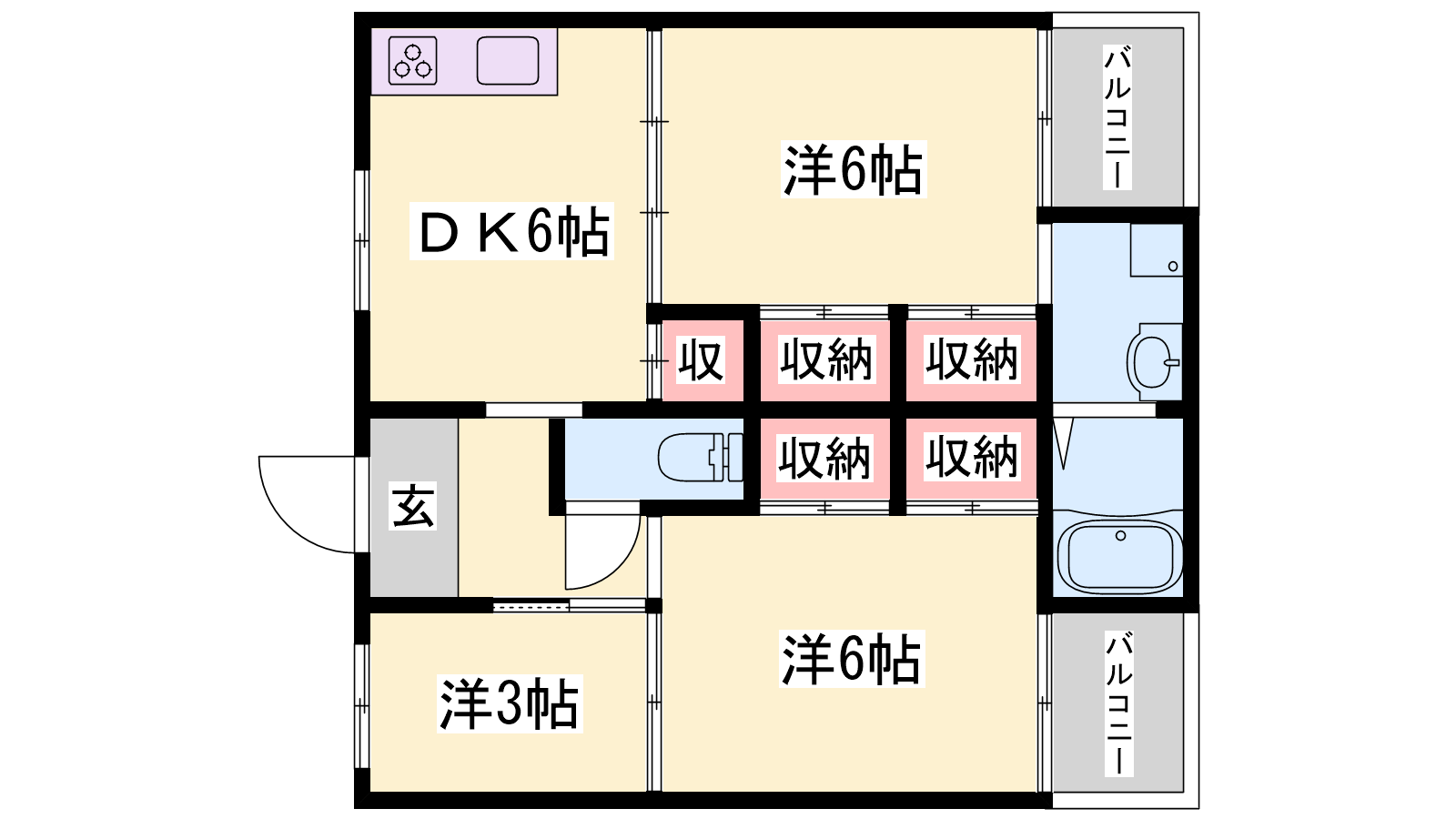 - DK6帖、洋室6帖、洋室6帖、洋室3帖