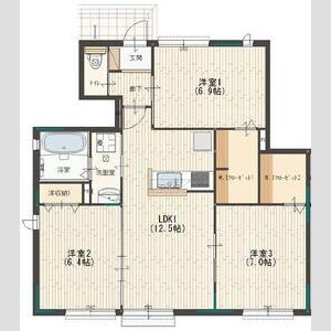 - LDK12.5帖、洋室7帖、洋室6.9帖、洋室6.4帖
