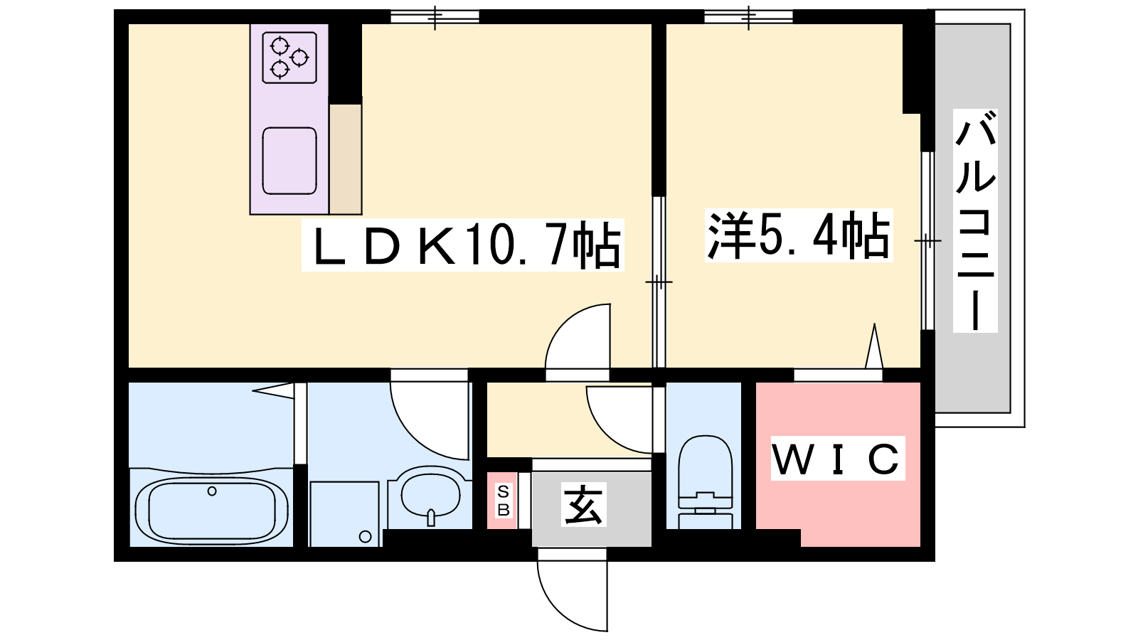 - LDK10.7帖、洋室5.4帖