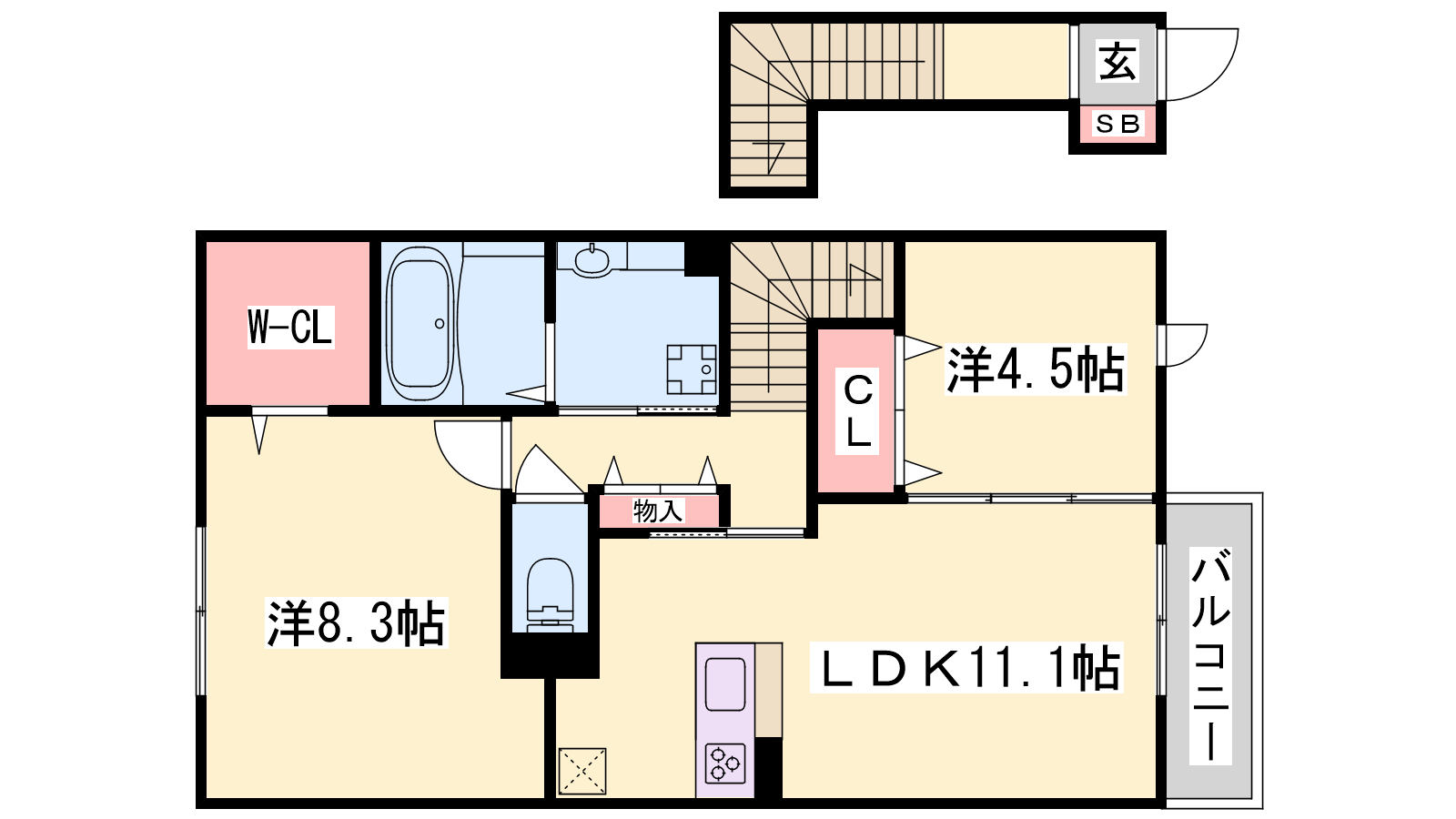 - LDK11.1帖、洋室8.3帖、洋室4.5帖