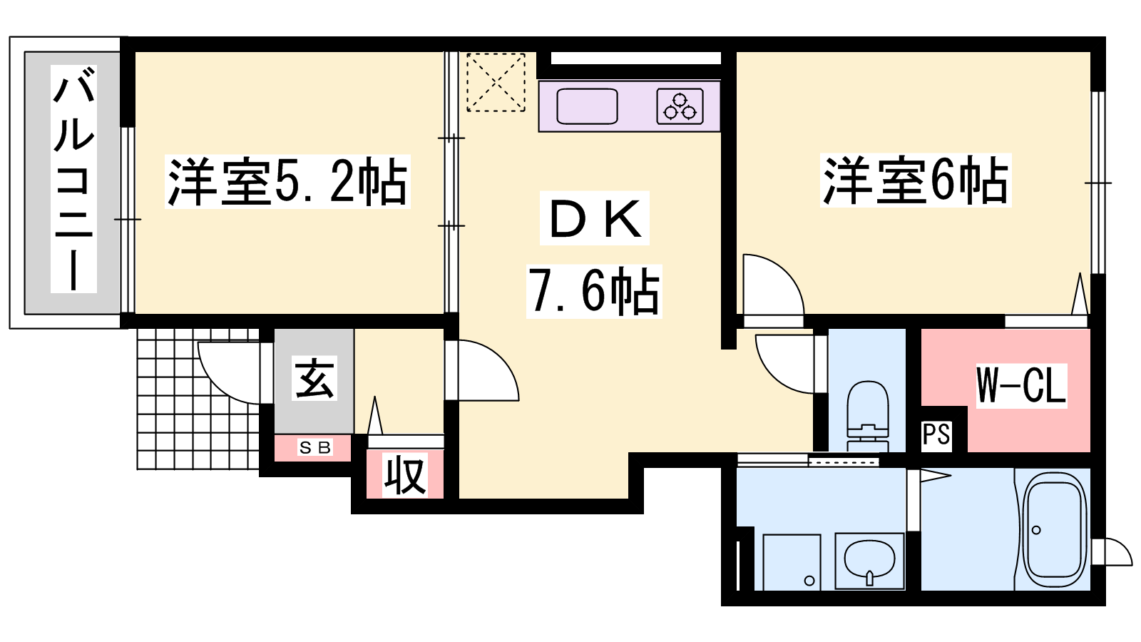 - DK7.6帖、洋室6帖、洋室5.2帖