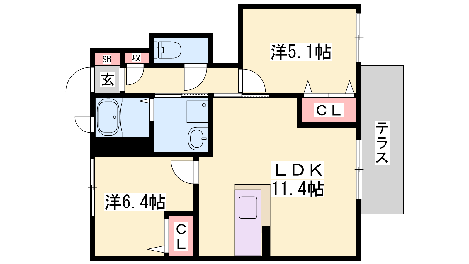 - LDK11.4帖、洋室6.4帖、洋室5.1帖