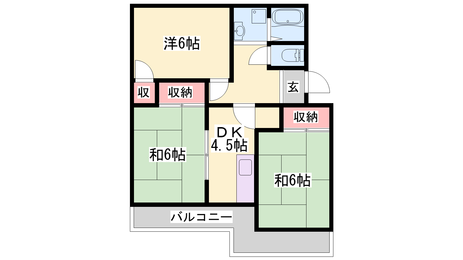 - DK4.5帖、洋室6帖、和室6帖、和室6帖