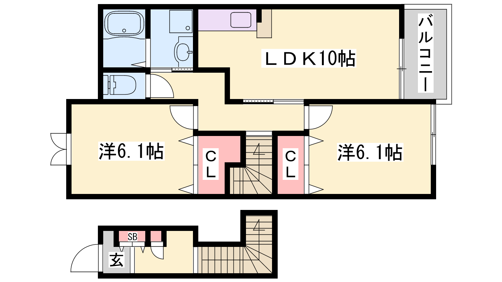 - LDK10帖、洋室6.1帖、洋室6.1帖