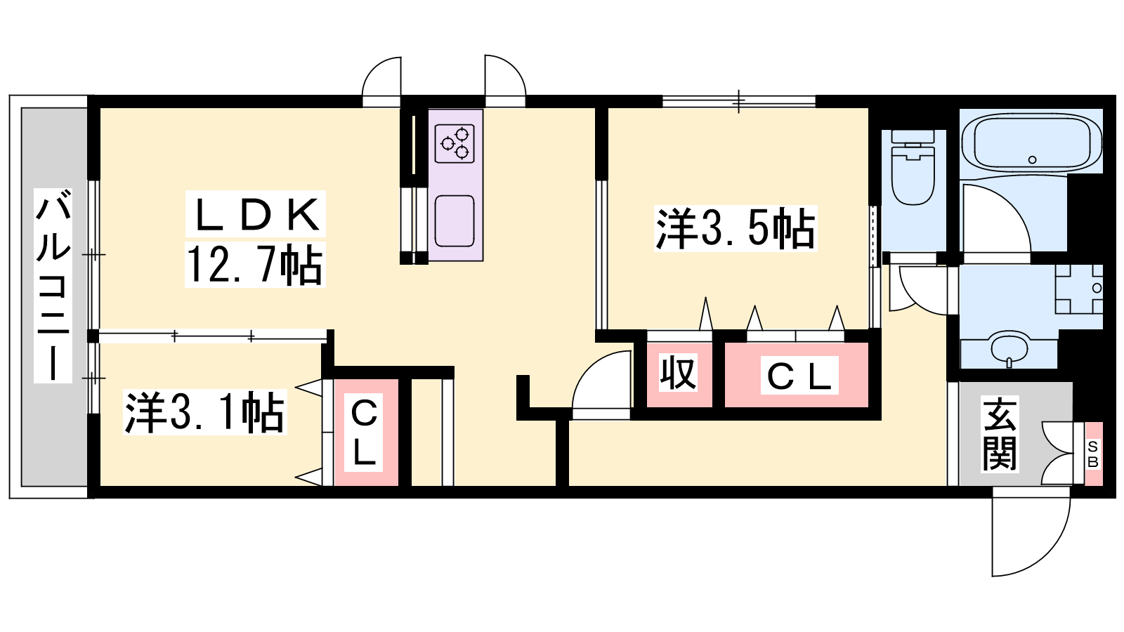 - LDK12.7帖、洋室5.3帖、洋室3.1帖