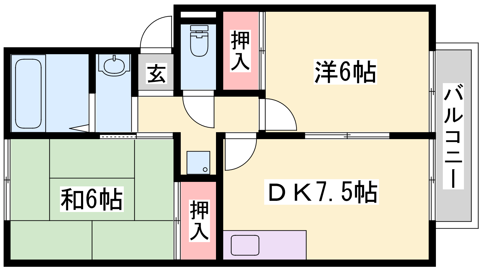 - DK7.5帖、洋室6帖、和室6帖