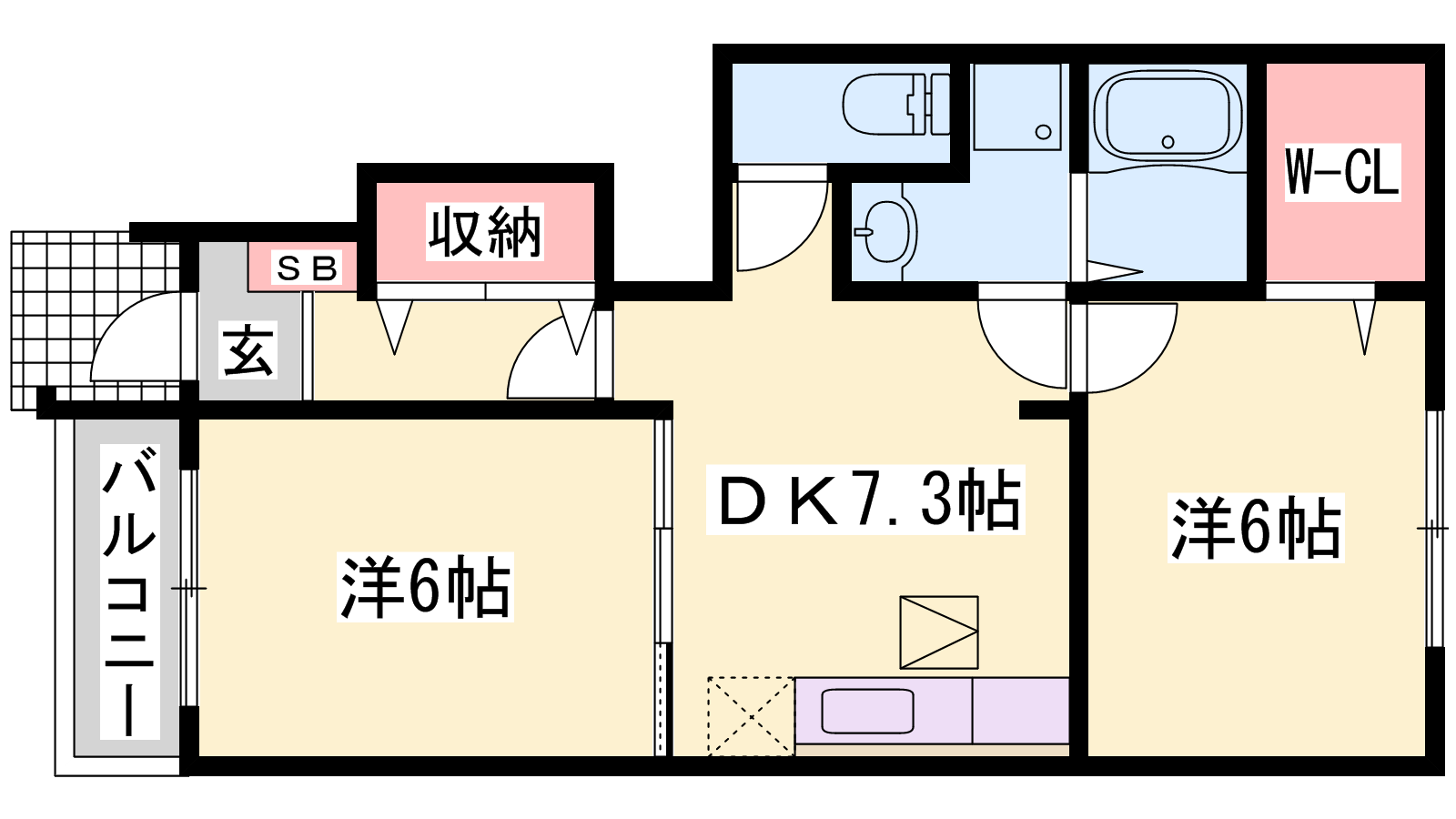 - DK7.3帖、洋室6帖、洋室6帖