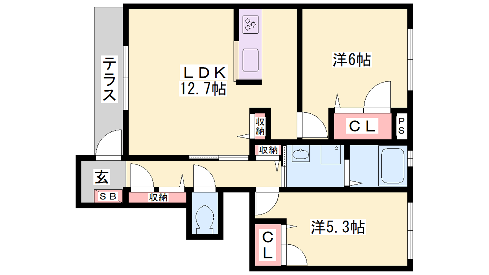 - LDK12.7帖、洋室6帖、洋室5.4帖
