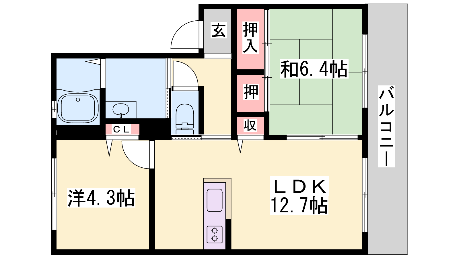 - LDK12.7帖、和室6.4帖、洋室4.4帖