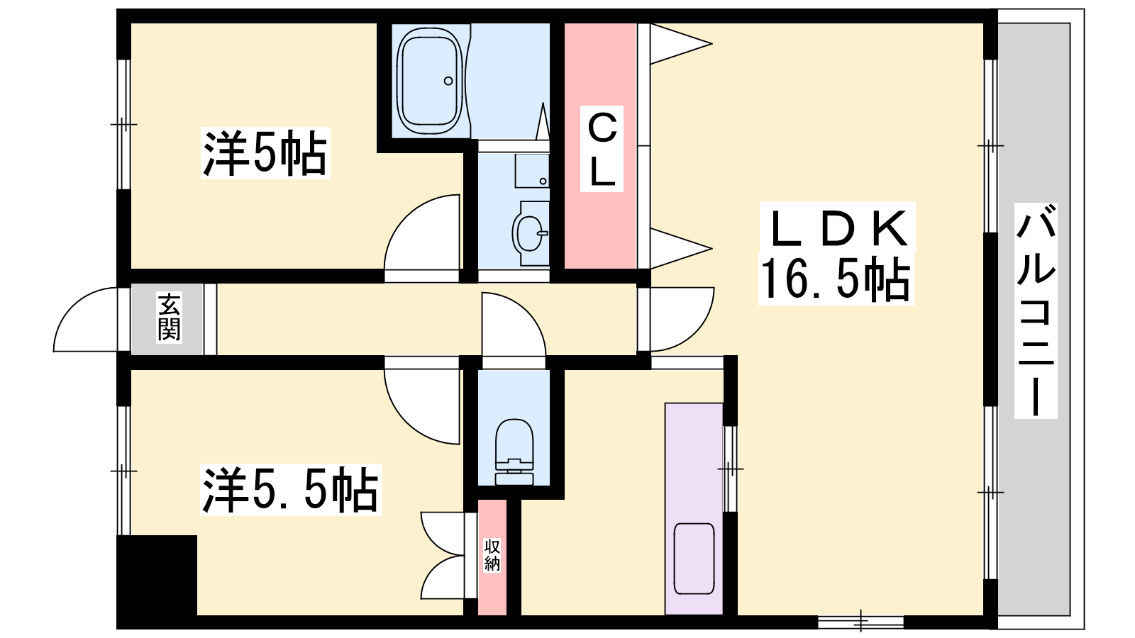 - LDK16.5帖、洋室5帖、洋室5.5帖