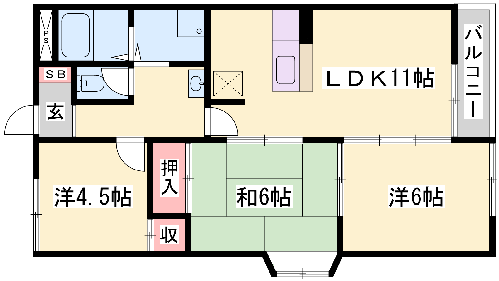 - LDK11帖、洋室6帖、洋室4.5帖、和室6帖