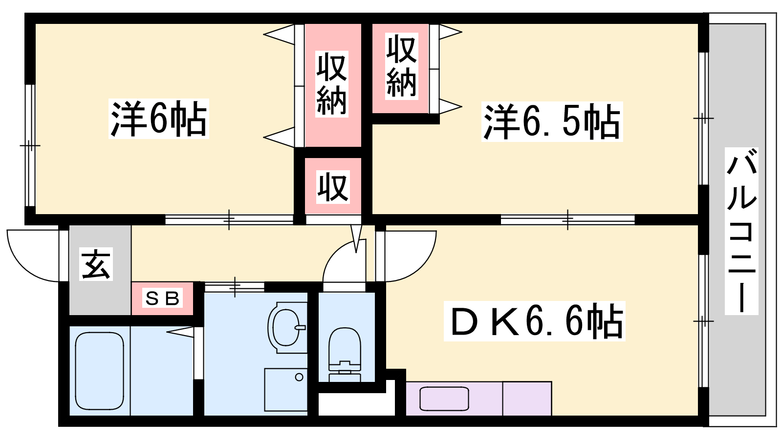 - DK6.6帖、洋室6.6帖、洋室6帖