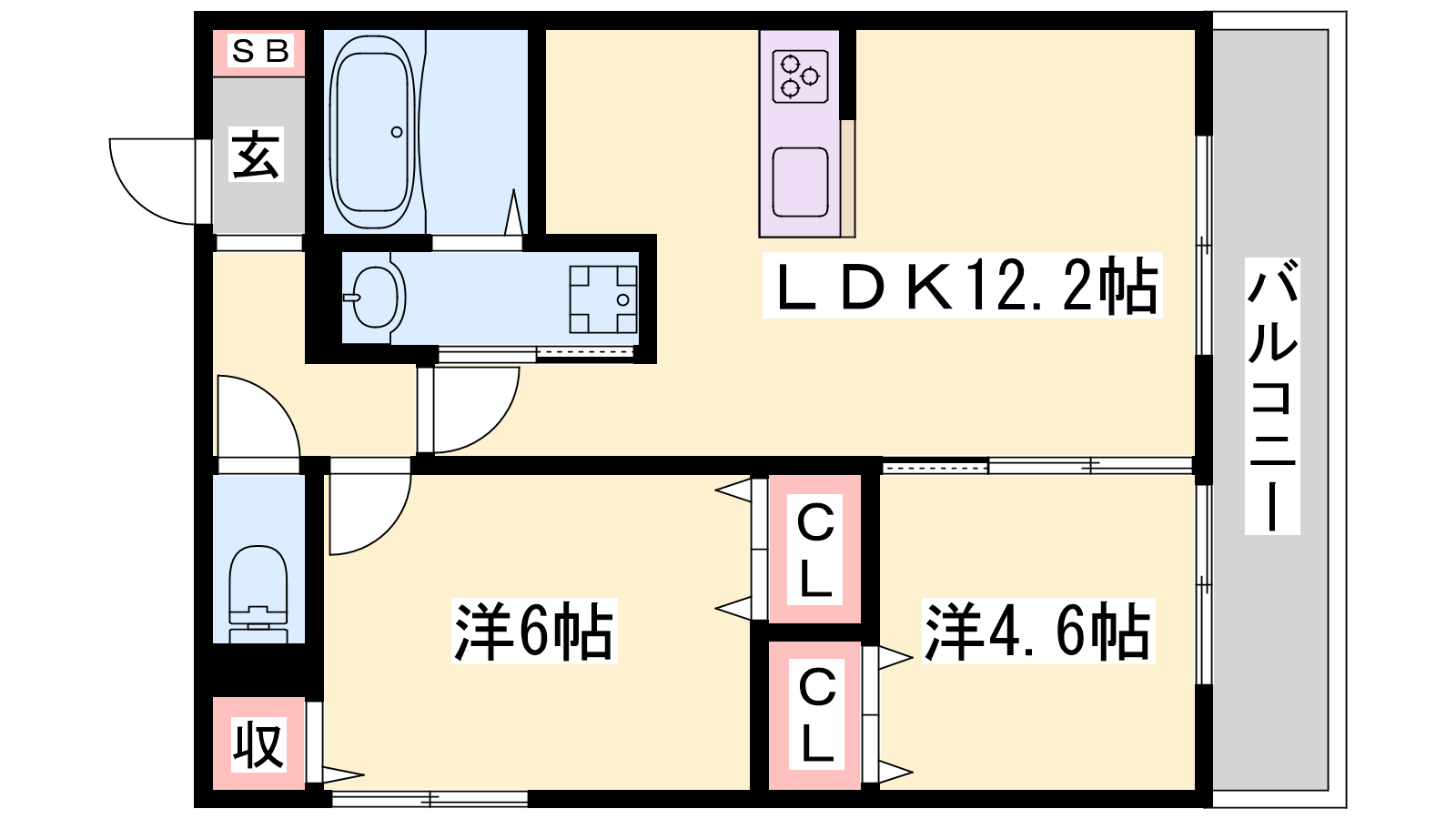 - LDK12.2帖、洋室6帖、洋室4.6帖