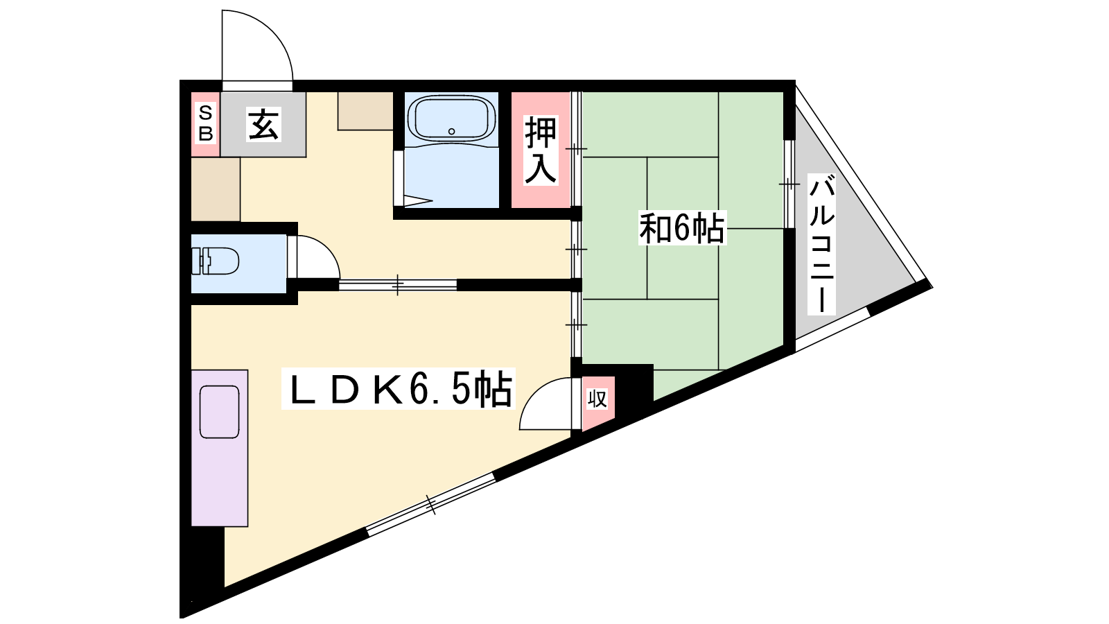- LDK6.5帖、和室6帖