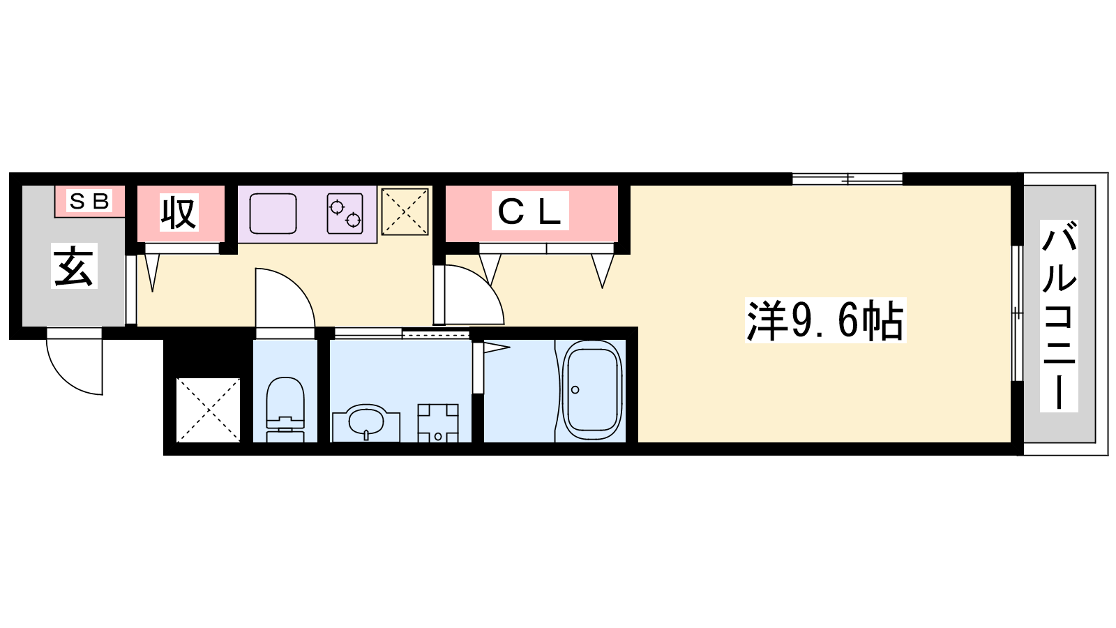 - K2.2帖、洋室9.6帖