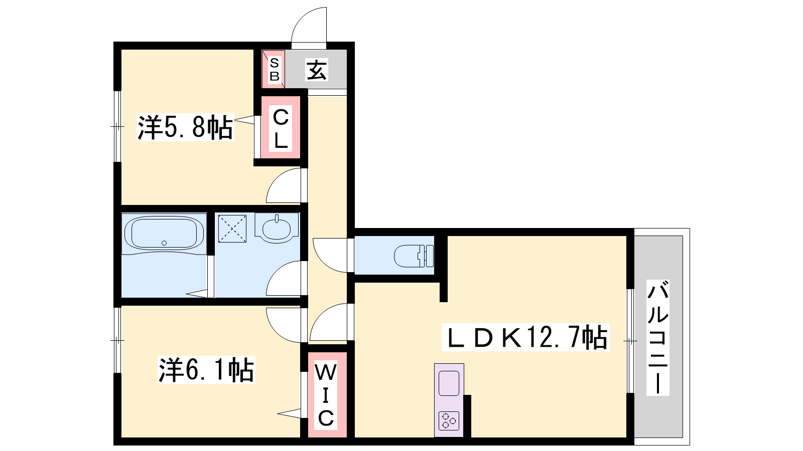 - LDK12.7帖、洋室6.1帖、洋室5.8帖