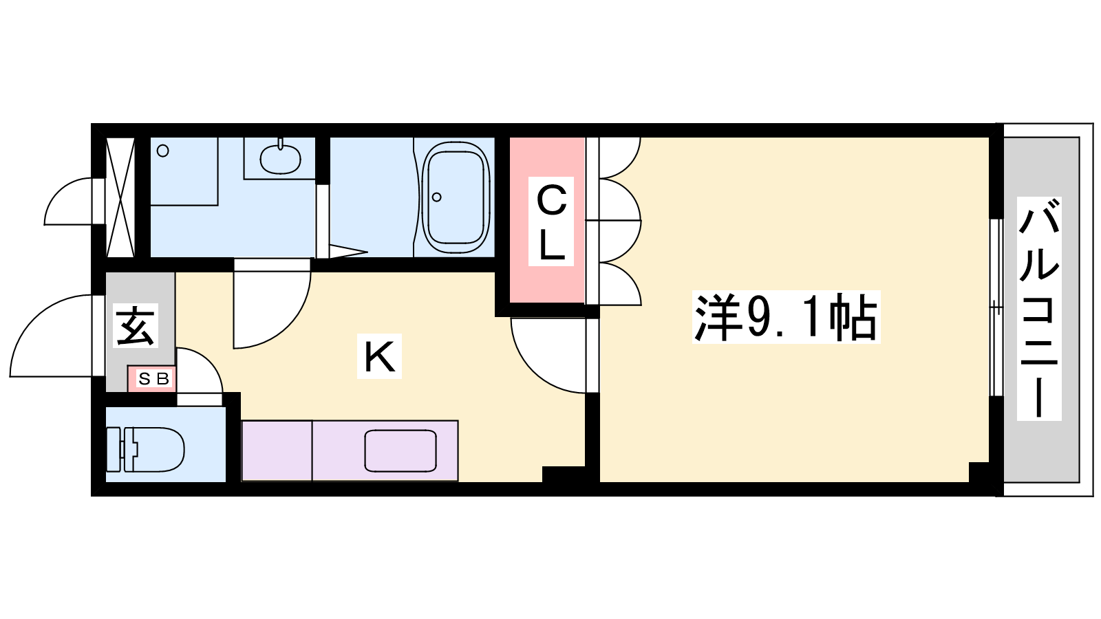 - K3帖、洋室9.1帖