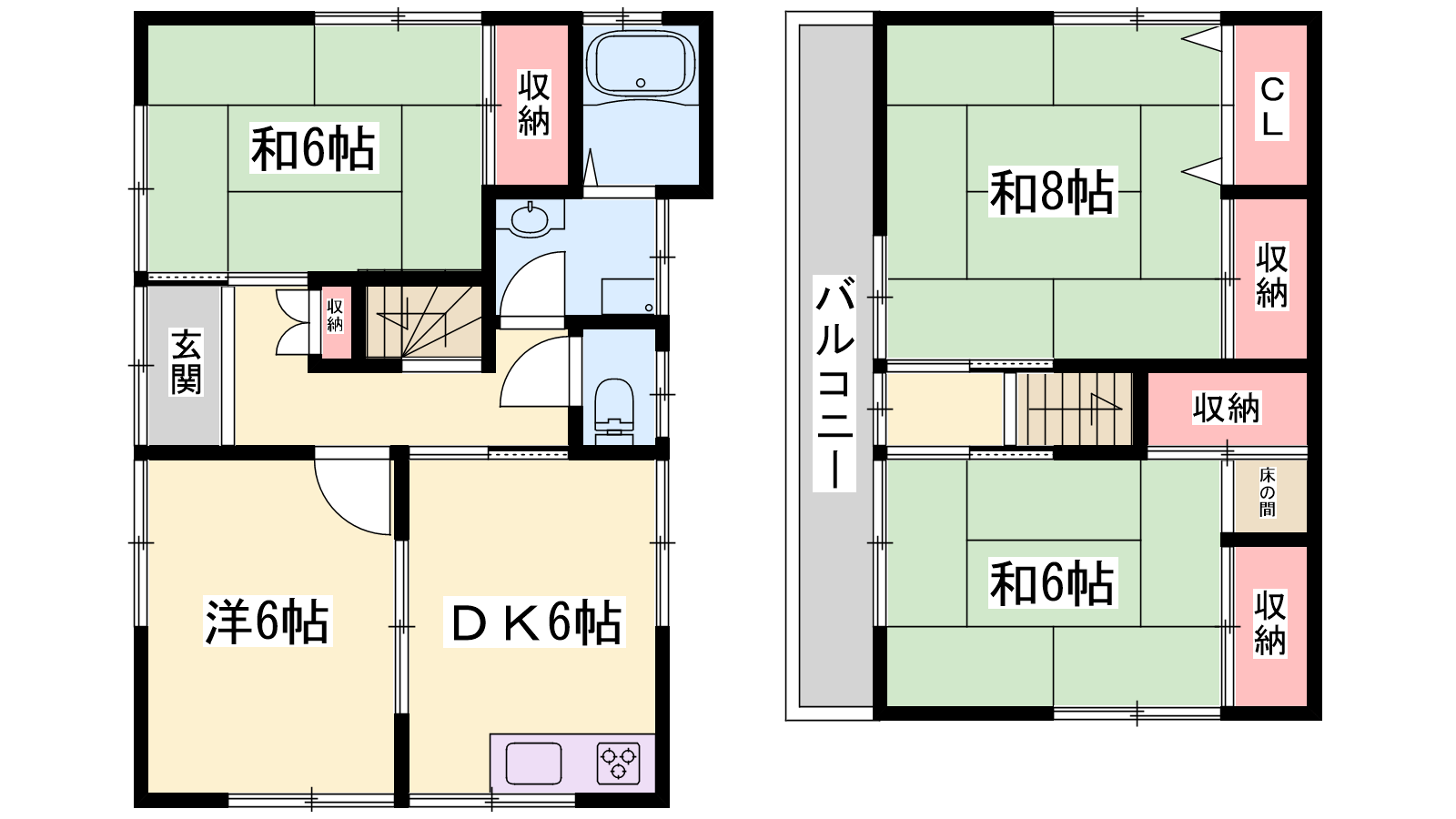 - DK6帖、洋室6帖、和室8帖、和室6帖、和室6帖