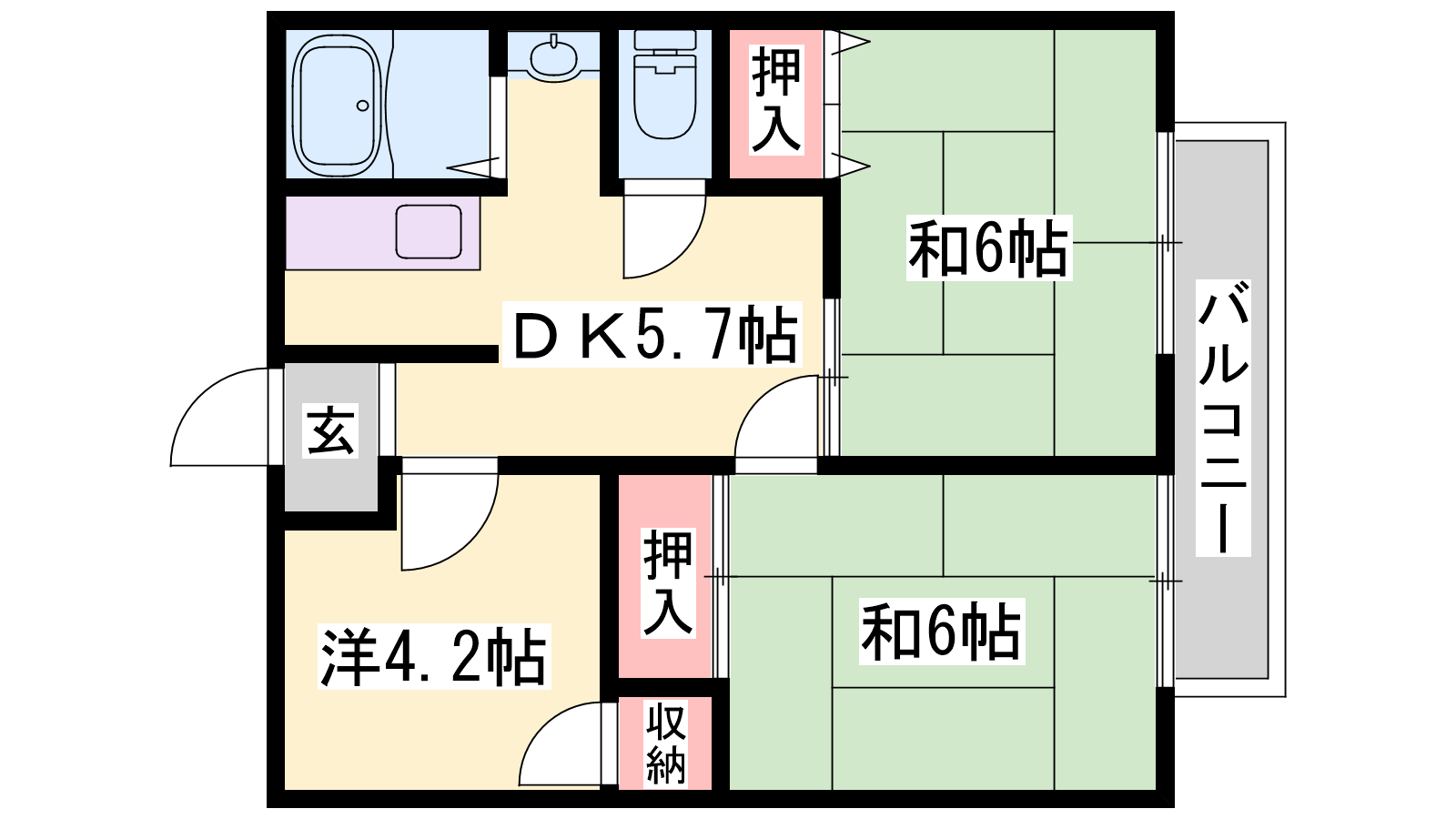 - DK5.7帖、洋室4.2帖、和室6帖、和室6帖