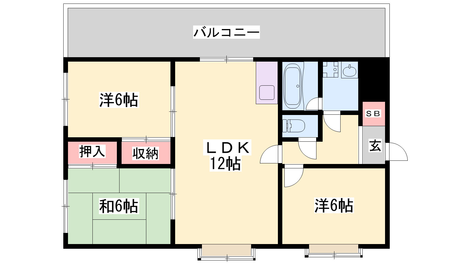 - LDK12帖、洋室6帖、洋室6帖、和室6帖