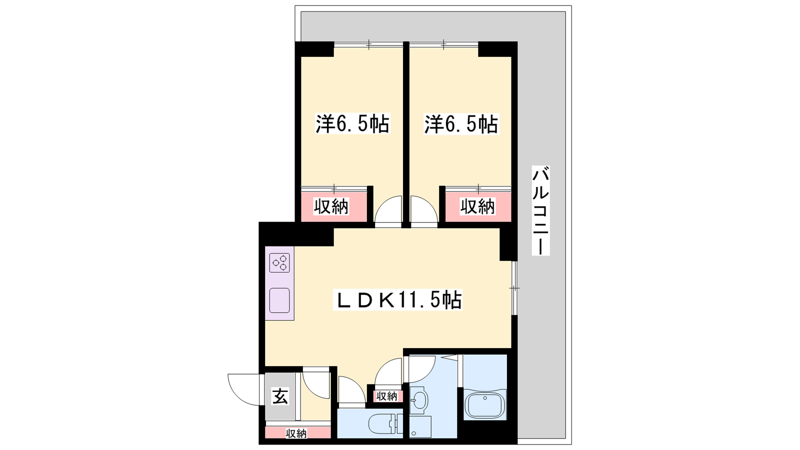 - LDK11.5帖、洋室6.5帖、洋室6.5帖