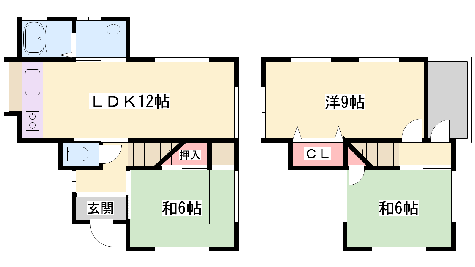 - LDK12帖、洋室9帖、和室6帖、和室6帖