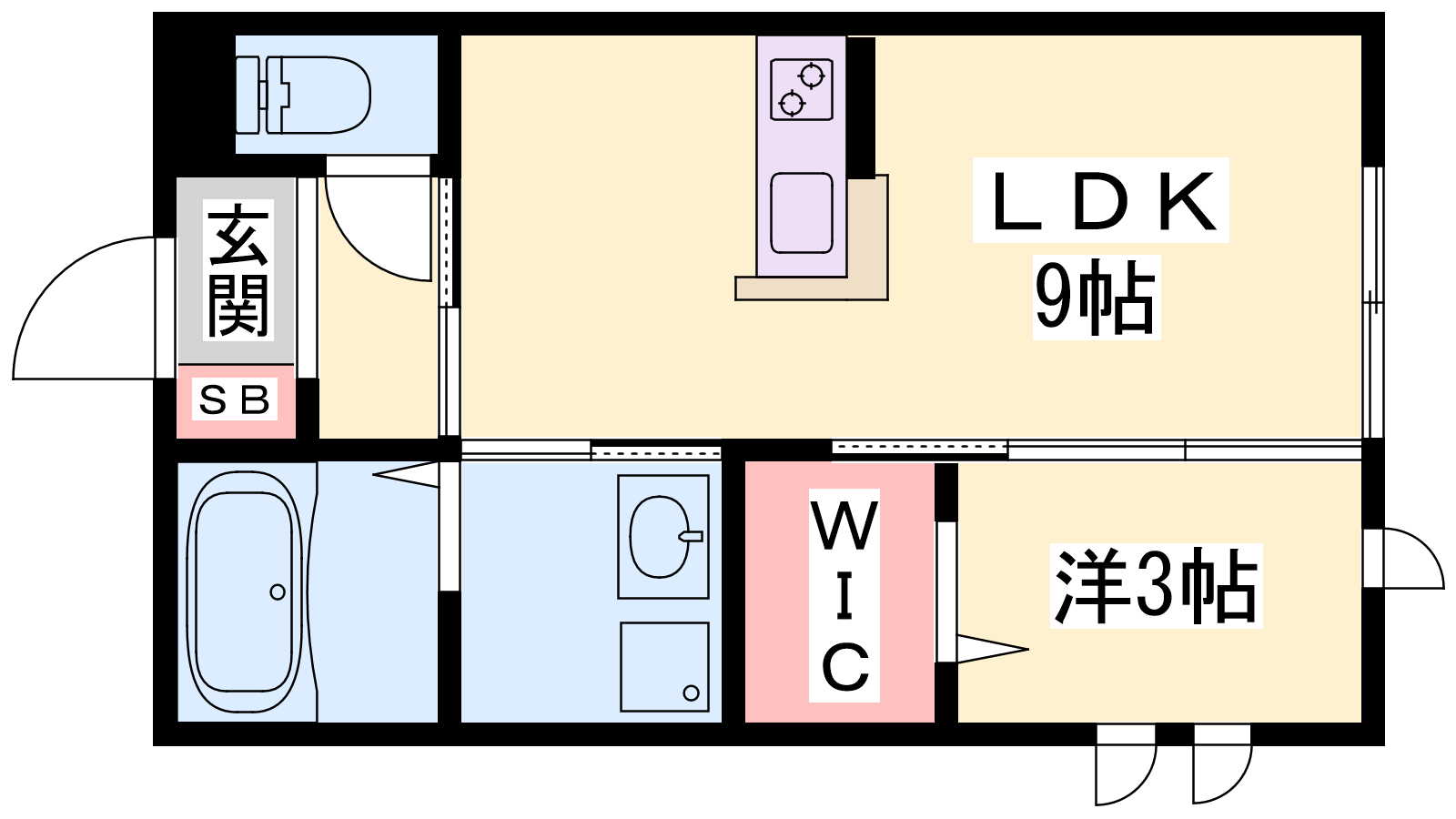 - LDK9帖、洋室3帖