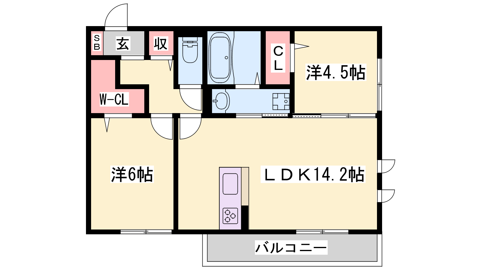 - LDK14.2帖、洋室6帖、洋室4.5帖