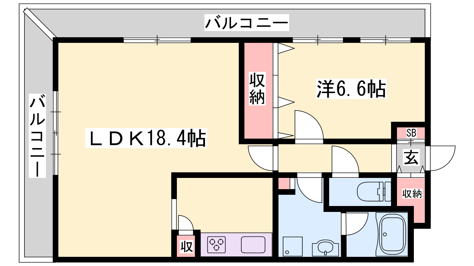 - LDK18.4帖、洋室6.6帖