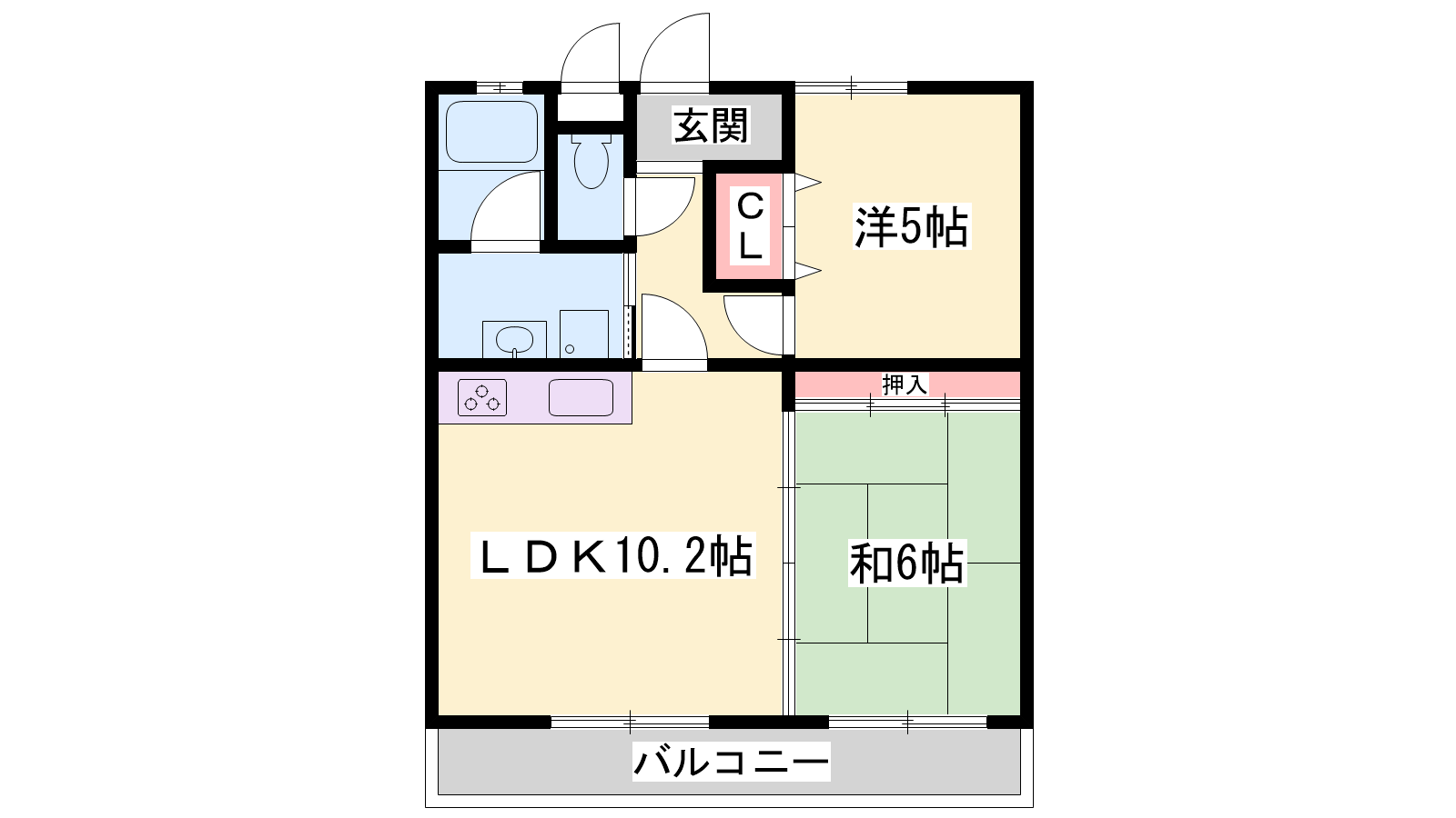 - LDK10.2帖、洋室5帖、和室6帖
