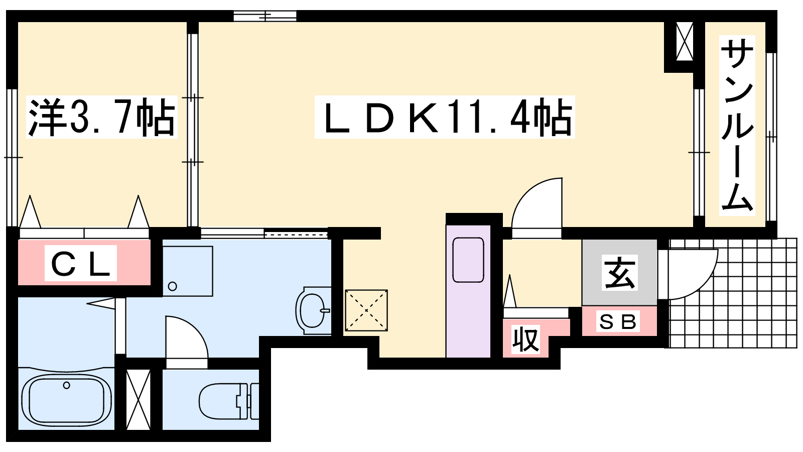 伊保駅徒歩圏内、サンルーム付き、BS/CSアンテナ・エアコン1台付き。