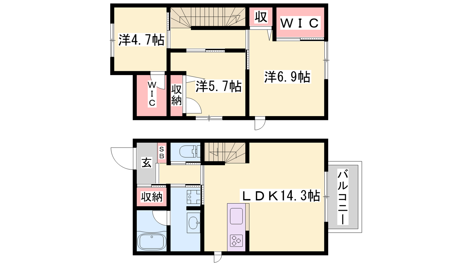 - LDK14.3帖、洋室8.9帖、洋室5.7帖、洋室4.7帖